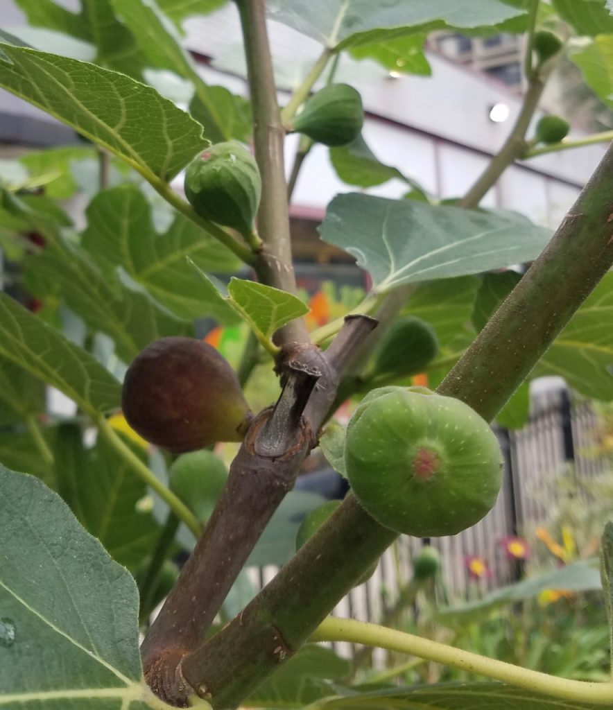 Aside from beautiful flowers, our garden grows a variety of fruit and vegetables. Everybody who has the tiniest bit of land wants to grow their own delicious tomatoes. Some of our gardeners plant much more than that: different varieties of cucumbers, okra, tomatillos, asparagus, kale, asian squash, carrots, radishes, many different herbs and even zucchini. We also have raspberries and blackberries and a few fruit trees of which the fig tree is the most prolific. Nothing beats the sweetness of a fig that has ripened on the tree.