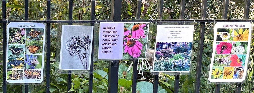 Beautiful red raspberries and tomatoes and ripe figs tempt everybody to pick them. And so it happens that strangers can’t help themselves from helping themselves to the juiciest fruit. When gardeners come at the end of the day to harvest what they planted, it is often gone. That’s frustrating. Even more frustrating is when not only fruit and some flowers disappear, but also entire plants. This was the case this summer, and it made us sad and a little angry. Don’t people know that a public garden is there for everyone to enjoy and that the plants, flowers and fruit are not up for grabs? Don’t people know that the gardener who plants a flower and takes care of it wants to see it thrive? — Maybe people don’t know these things.