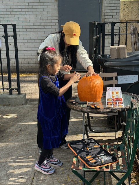 Because we had listed this event on the Parks Department website, people came from all over New York. We welcomed a family from Harlem, one from Queens, tourists from Taiwan and some of our neighbors. The weather was perfect and we all had a blast. At one point, we ran out of pumpkins and had to rush to buy more.