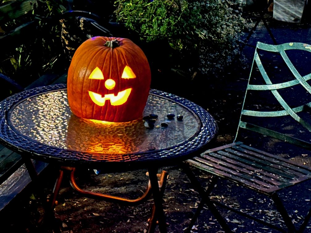 At the end of the day, we proudly displayed three pumpkins near our gates. Equipped with a battery light, they glowed every evening for a couple of weeks.