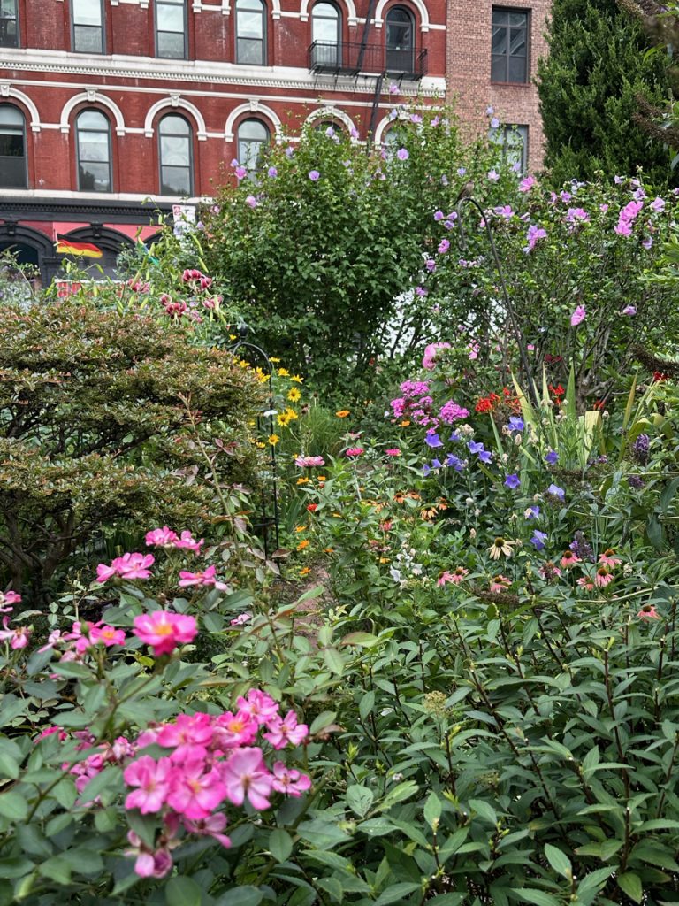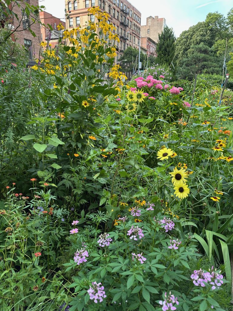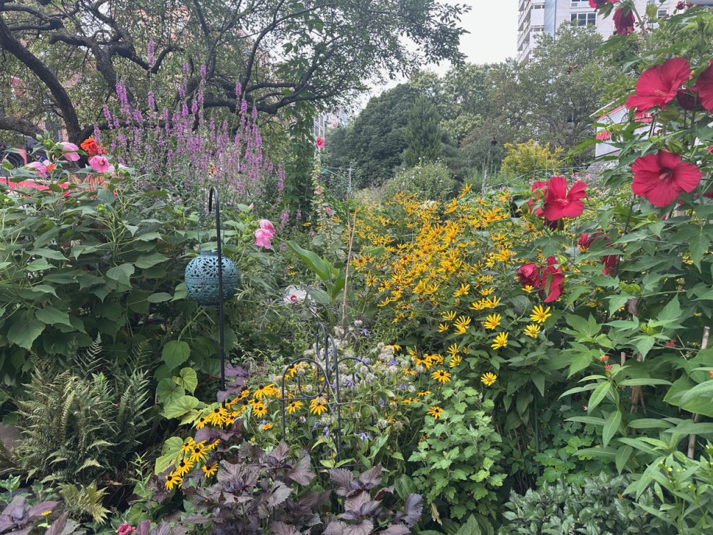 While in Spring and early summer, the color palette of our flowers is dominated by pinks and pale blues, in summer, the garden got really bright with different colors. As soon as the Helianthus, Heliopsis (sunflowers), Rudbeckia (black eyed susans and rlatives) and Coreopsis are blooming, sunny yellow shows up everywhere. Here are some photos to remind us how lovely the garden looked in July: